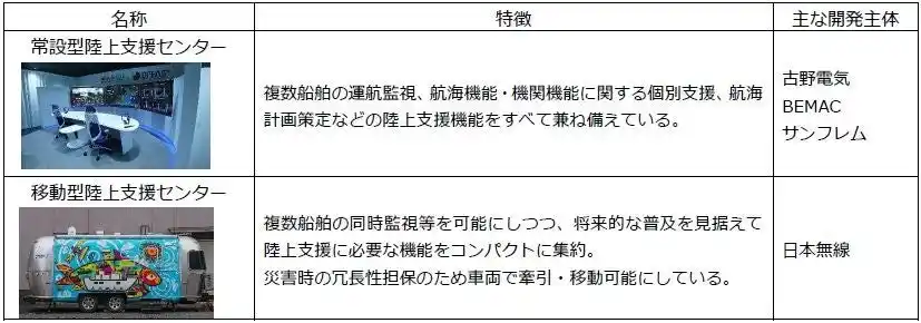 従来船上で行ってきた業務を陸上で実施できるようにするため、機関部の遠隔監視や、運航計画の立案などを実施し複数の無人運航船を同時に支援する場所として、陸上支援センター(Fleet Operation Center, FOC)を構築しています。これにより、船員の多様な働き方の実現やより安全な運航を実現します。 |