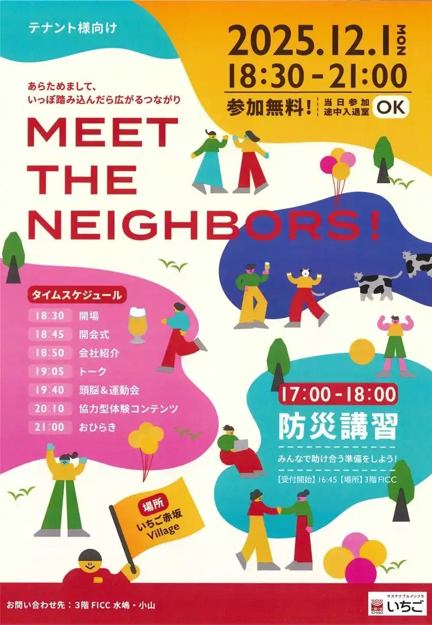 いちごはコミュニティの創出、地域の連携、防災緊急対策を目指したコミュニティイベント「Meet The Neighbors!」を開催してまいります。 |