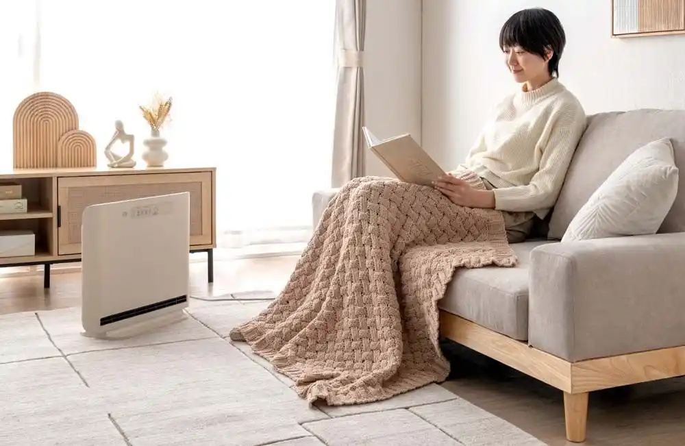 1200Wの電気の力で暖めるため、立ち上がりが速く、電気を入れてすぐに暖かさを実感することができます。パワフルモードで使用する際の対応畳数は最大7畳となり、様々なシーンで使用できる対応畳数になっています。 |