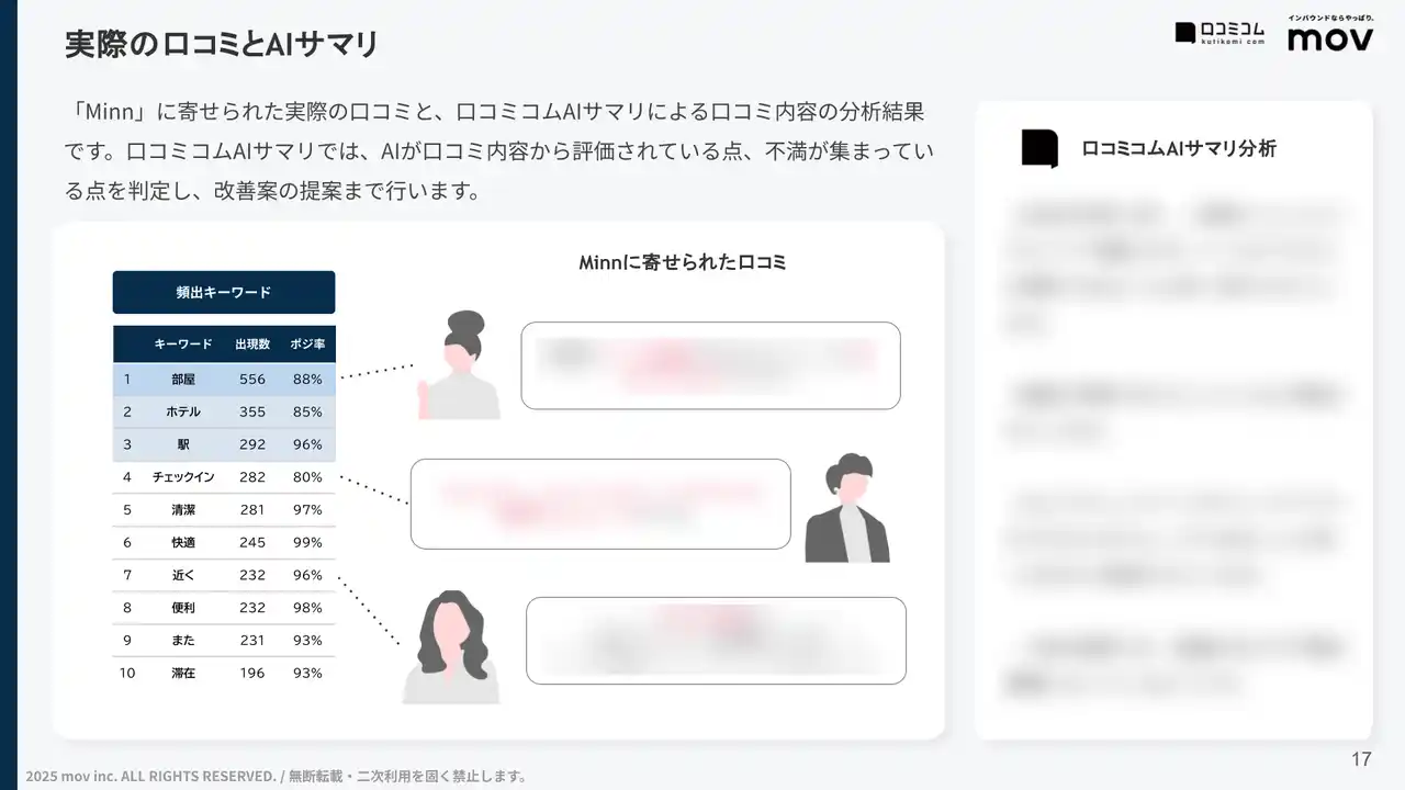 そのほか、口コミ分析レポートでは外国語口コミ評価やAI口コミ分析も発表しています。 |