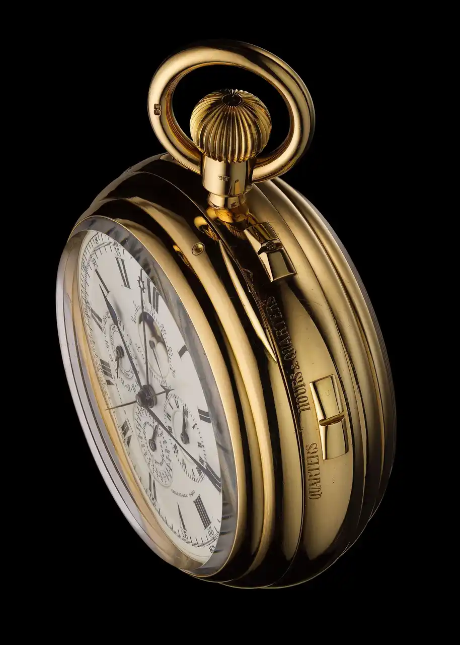 19種類の複雑機構を搭載する“グロス ピエス”は、1899年の伝説的な“ユニヴェルセル”と並び、オーデマ ピゲ史上最も複雑な懐中時計です。“ユニヴェルセル”と同様、ジュウ渓谷のエタブリサージュシステムの生き証人であり、専門職人たちが集結し、20世紀初頭に最も複雑なタイムピースを生み出した歴史を物語っています。 |