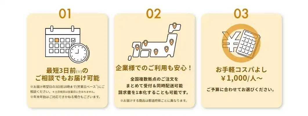 すぐご注文確定&手配ができるオードブルプランのみを対応エリア別にピックアップしご案内。 |