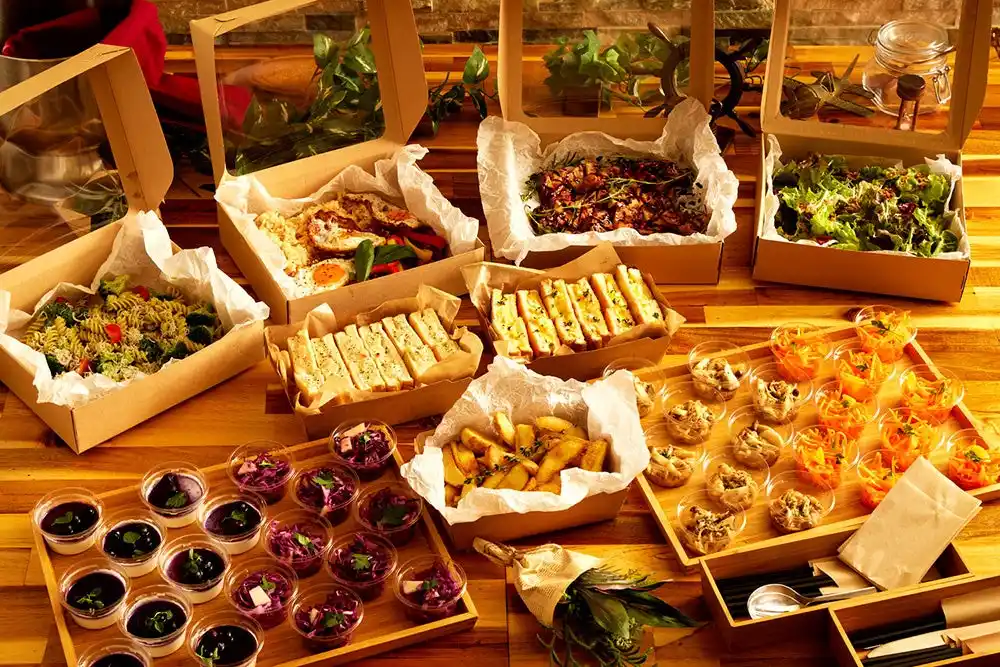 お店で調理したお料理を使い捨て容器に盛り付け、お届けのみを行うサービスです。 |