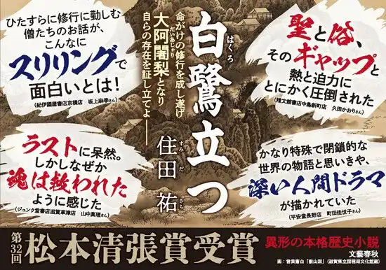 ひたすらに修行に勤しむ僧たちのお話が、こんなにスリリングで面白いとは!......住田祐さん『白鷺立つ』に驚愕した書店員さんの声をご紹介! |