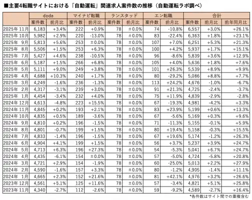 ●『自動運転ラボ』による定点求人案件数調査について