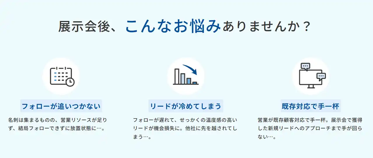 | 特に以下の課題は展示会後によく起きています。 | ||||||||||||||||||