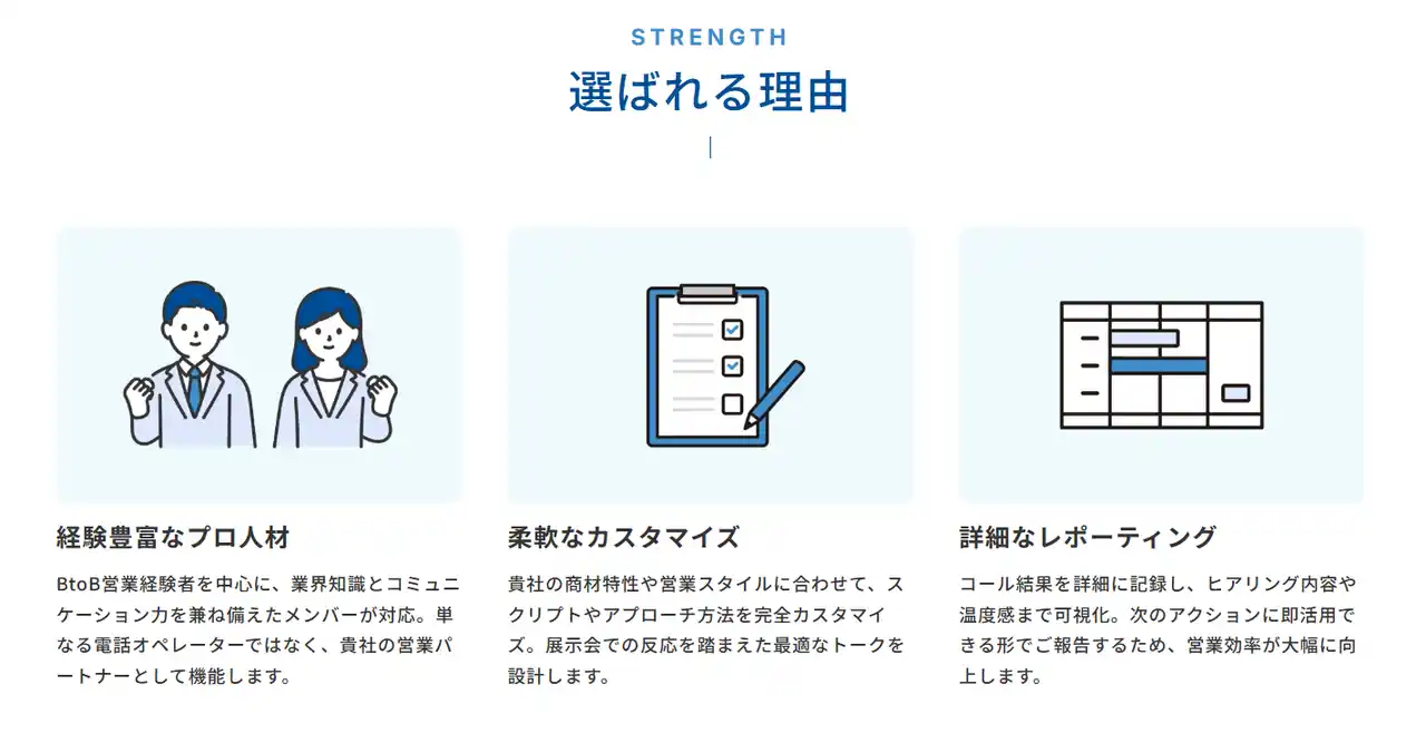 来場者リストや名刺取得にとどまり、 「獲得したリードが商談に結びつかない」「展示会後フォローが滞ってしまう」 というお悩みを抱える企業が多数ある現状を踏まえ、展示会後の初動フォローから再アプローチまでを包括的にサポートする体制を整えています。 |