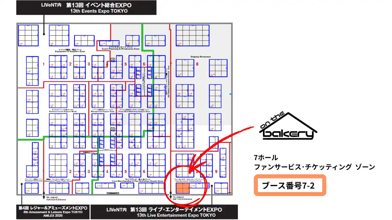 「LIVeNT 2026 7ホール 会場図(株式会社on the bakery:ブース番号7-2)」 |