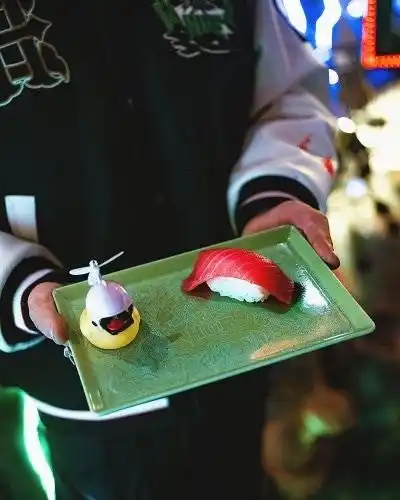 “富士山”や“寿司”など日本を象徴するモチーフを、刺繍やプリントなどの多彩なテクニックで、スタジアムジャケット、ダブルジップフーディー、クルーネックフリース、ビーニー、酒瓶&そばちょこセット、プレート、バックルベルト、マーブルスタッシュボックスなど幅広いアイテムに落とし込みました。 |