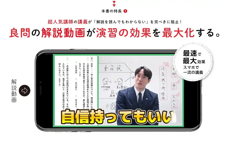 スマホでいつでも見られる解説動画が、疑問をその場で解消し、理解へと導きます。 |