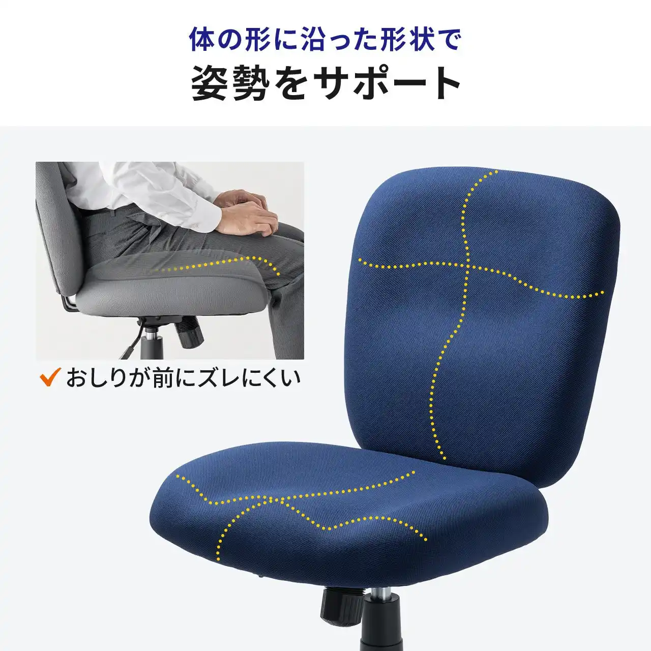 | ・体の形に沿う背もたれが、自然な姿勢を保ちやすく長時間作業に◎ | |||||||||