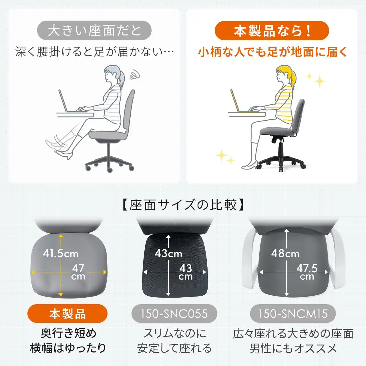 | ●座面奥行は41.5cmのコンパクトサイズです。 | |||||||||
