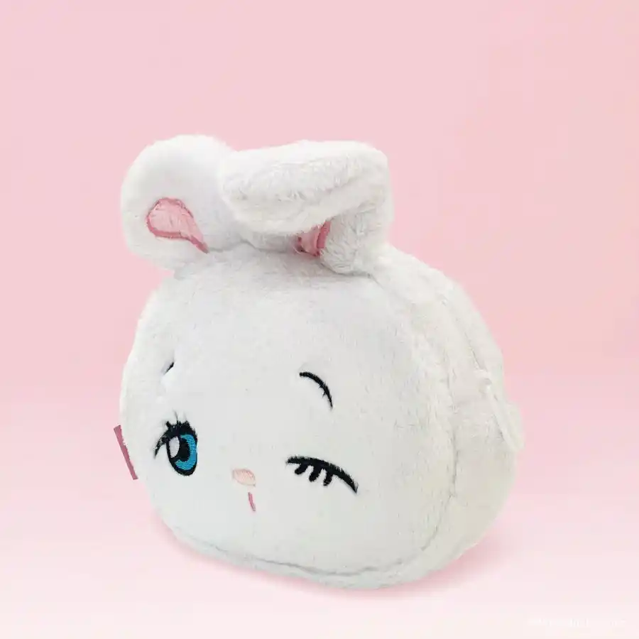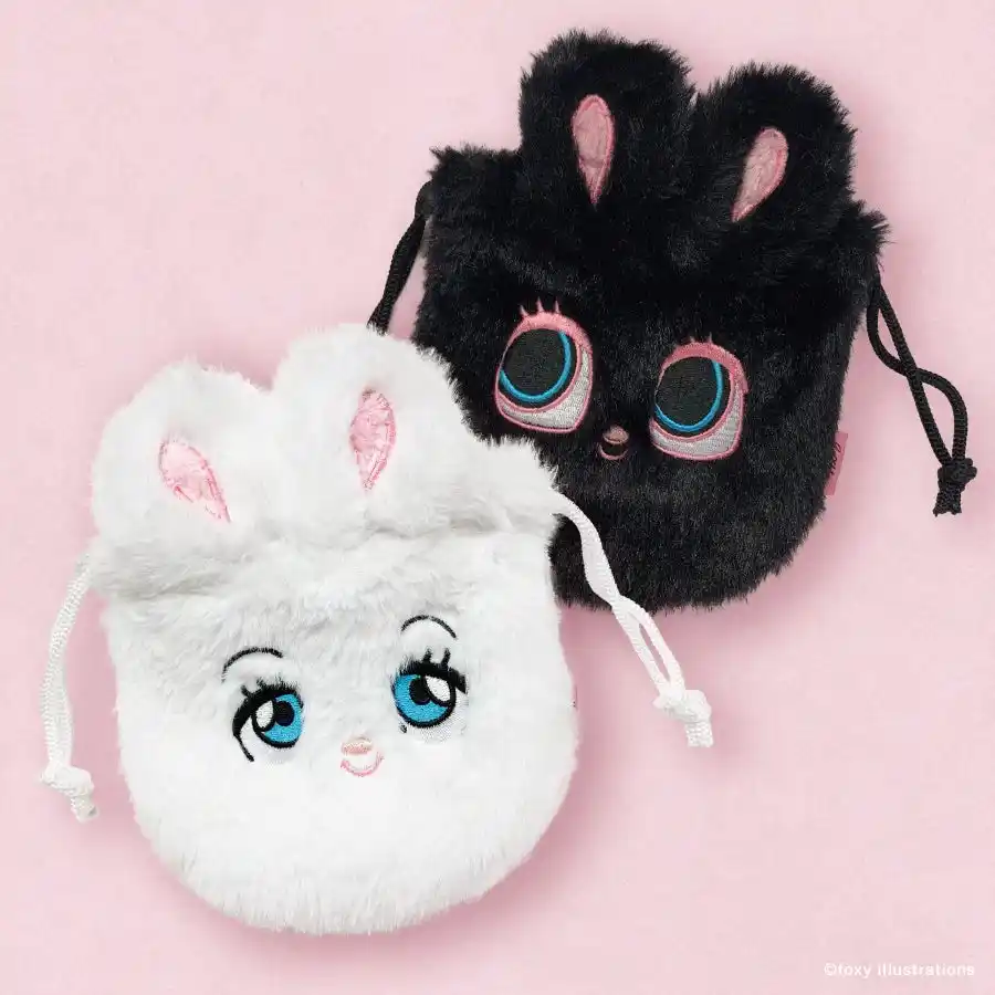 バニーとブラックバニーのフェイス巾着です!ふわふわ素材で、口を絞ると顔の形になります(ハート) |