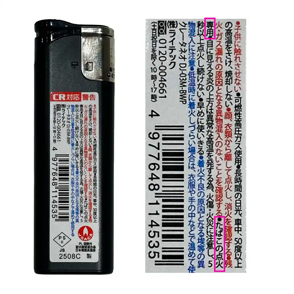 ライテックでは以前より、こうした課題解決に応えるため、安全性が高く、インテリアにも馴染む使いやすい着火具の開発に取り組んできました。 一般的に、使いきりライターの多くは、指が火元に近づきやすい構造上「たばこの点火専用」として設計されています(※用途の定義はメーカーによって異なります)。そのため、キャンドルのように火元が深い位置にあるものへの着火には適していない場合があります。実際、ライテックの使いきりライターには、「たばこの点火専用」と明記し販売してきました。 |