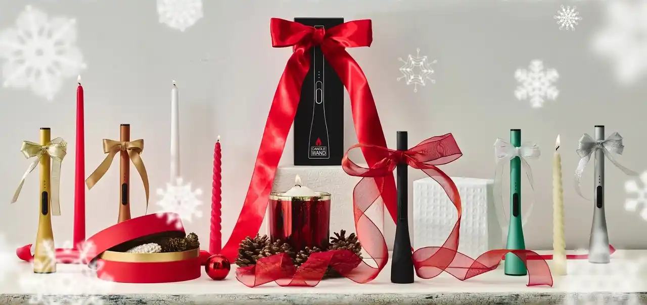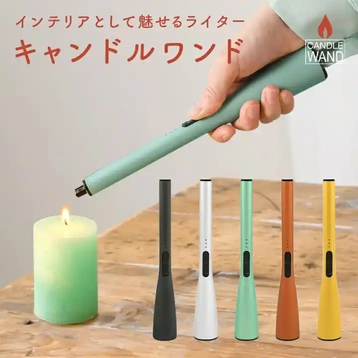 また、ライテックでは指が炎に触れにくい構造や炎の向きを調整できる構造など、安全性に配慮した「点火棒」や「多目的ライター」といった専用の着火具の使用を推奨しています。さらに今回の調査で明らかになった「安全性」「デザイン性」「繰り返し使える」といったニーズに対応する製品として、炎が出ないUSB充電式ライター「CANDLE WAND(キャンドルワンド)」を展開しています。 |