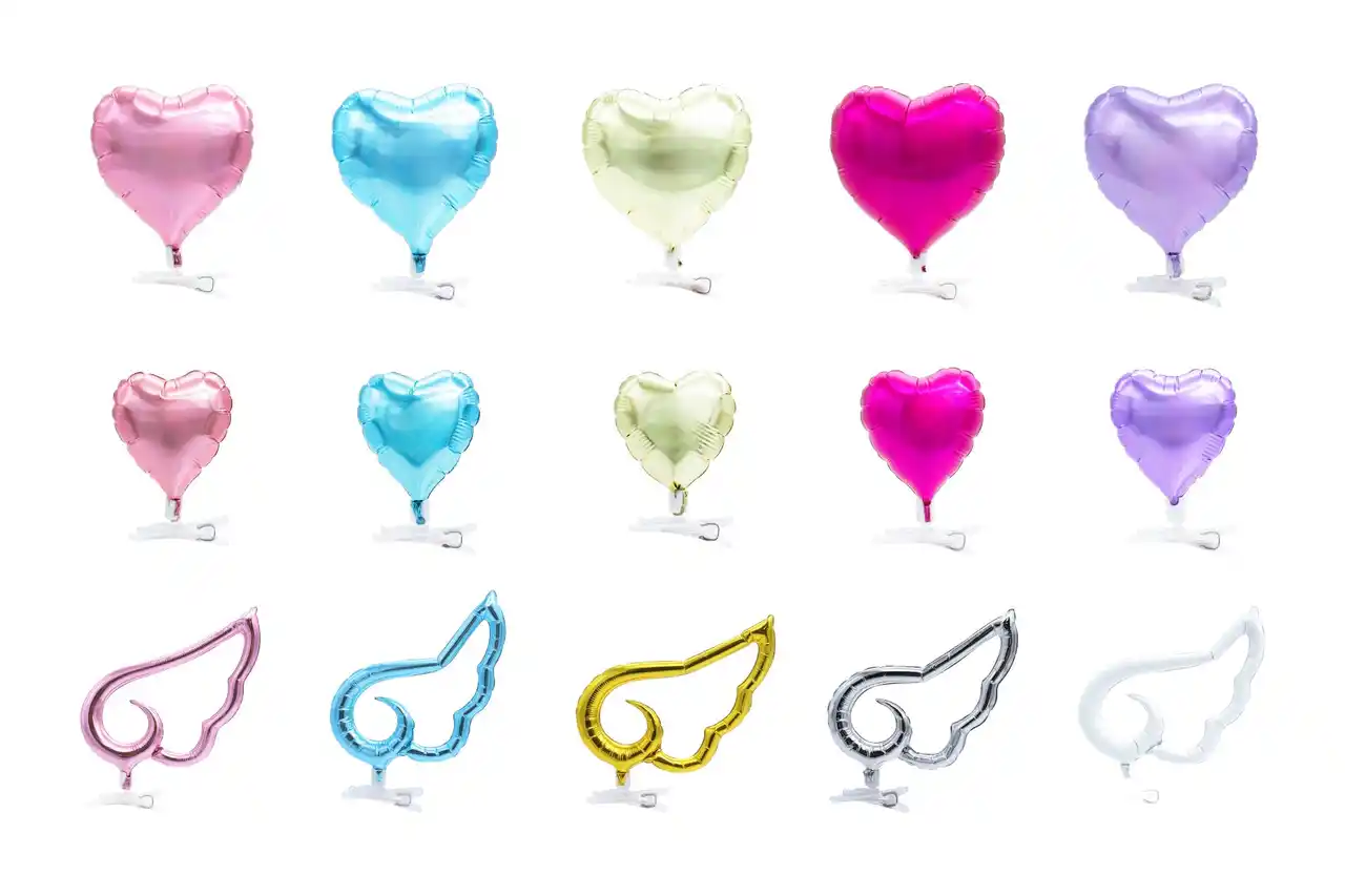 形状は大・小のハート型、エンジェルウィング型の3種類。いずれも全5色で展開します。 |