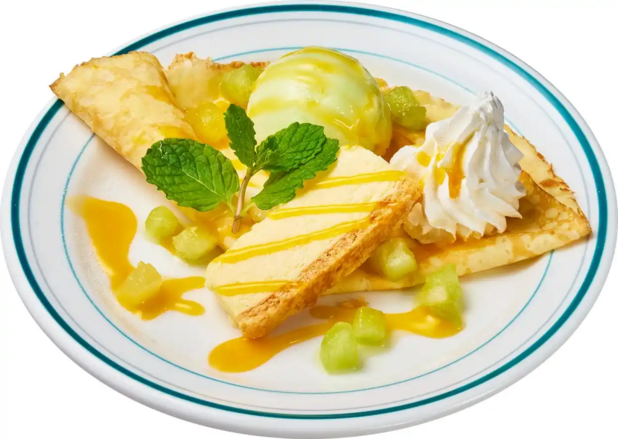 完熟メロンとチーズケーキの贅沢クレープ(480円/税込528円) |
