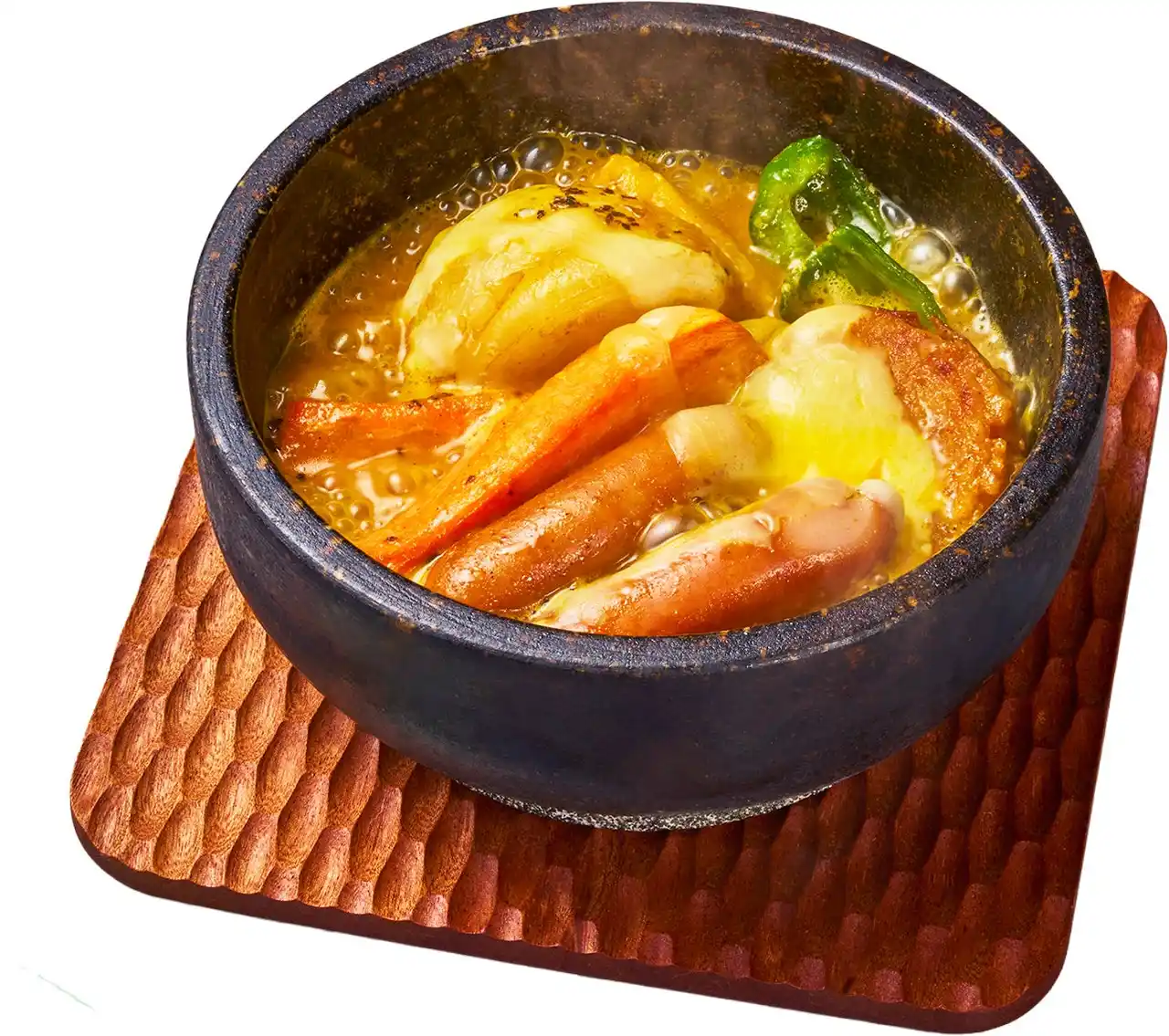 大きめにカットした野菜を一度揚げることで甘みと香ばしさを引き出し、石鍋ならではの熱々の状態で味わえるスープカレー。野菜がとろける瞬間、香りと甘さが重なり、身体の芯から温まります。 |