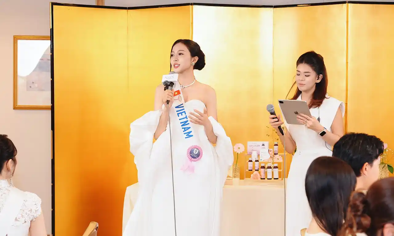 会場は“ミニマル・静寂・調和”を基調とした日本文化を想起させる空間で構成され、国内外のメディアや美容専門家、インフルエンサーなどが来場。ブランドアンバサダーであるミス・インターナショナル2024のフイン・ティ・タン・トゥイさん、ミス・インターナショナル2025 ベトナム代表のグエン・ゴック・キュー・ドゥイさんも登壇し、日本の美意識とNUCOSの哲学に触れるメッセージを語りました。 |