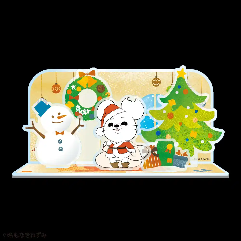 | クリスマス仕様の名もなきねずみを立体的に楽しめるアクリルジオラマ。 | |||||||||