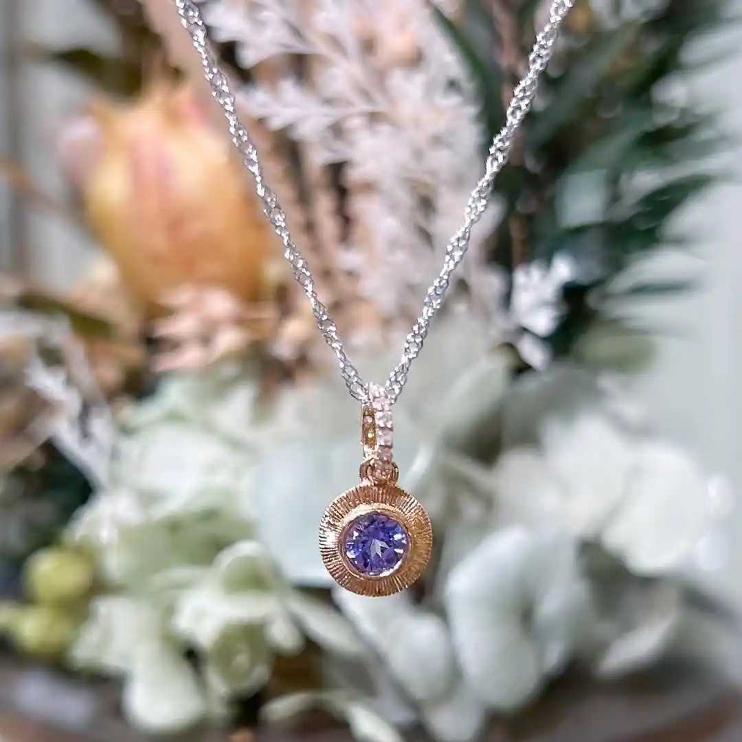 タンザナイトの青紫が柔らかくきらめくペンダント |