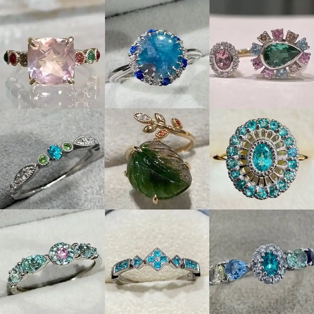 なんば店には、リング・ペンダント・ピアスの新作が揃い、宝石の“横顔”の美しさを引き立てるラインアップをご紹介しております。お持ちのルースや、マルシェでお選びいただいた石のお仕立ても承っておりますので、店頭にてお気軽にご相談ください。 |