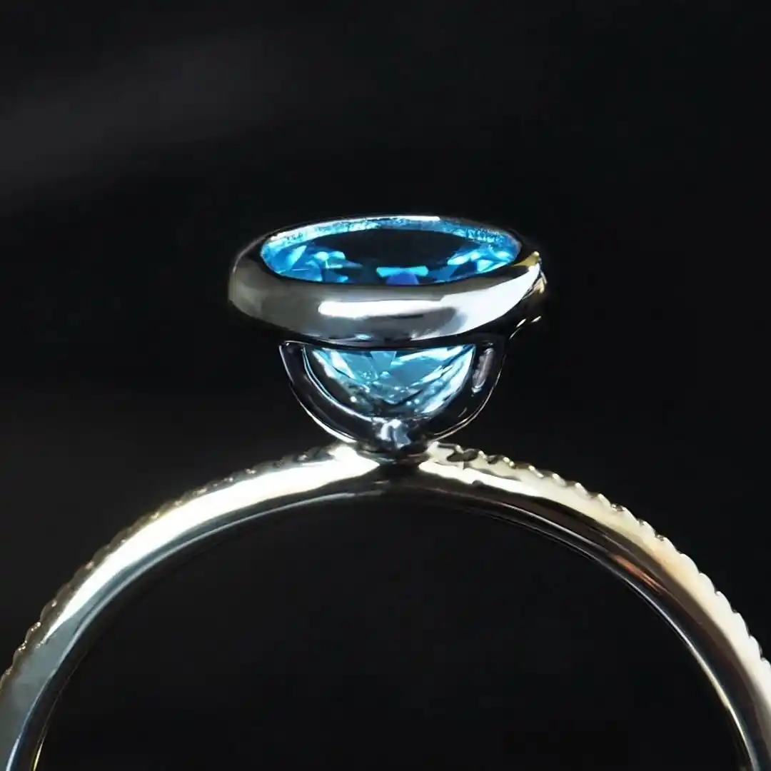 石枠全体は軽やかな曲線で構成され、光を多方向から取り込むことで、宝石の透明感と輝きを引き立てる設計となっております。側面からはキューレットの先まで光が通り、宝石そのものの美しさを360度から感じていただけます。 |