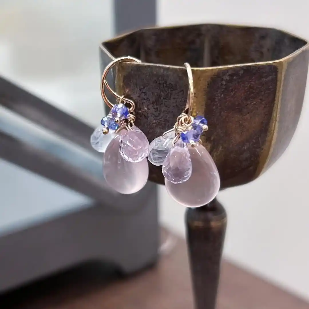 タンザナイトとローズクォーツを組み合わせたピアス |