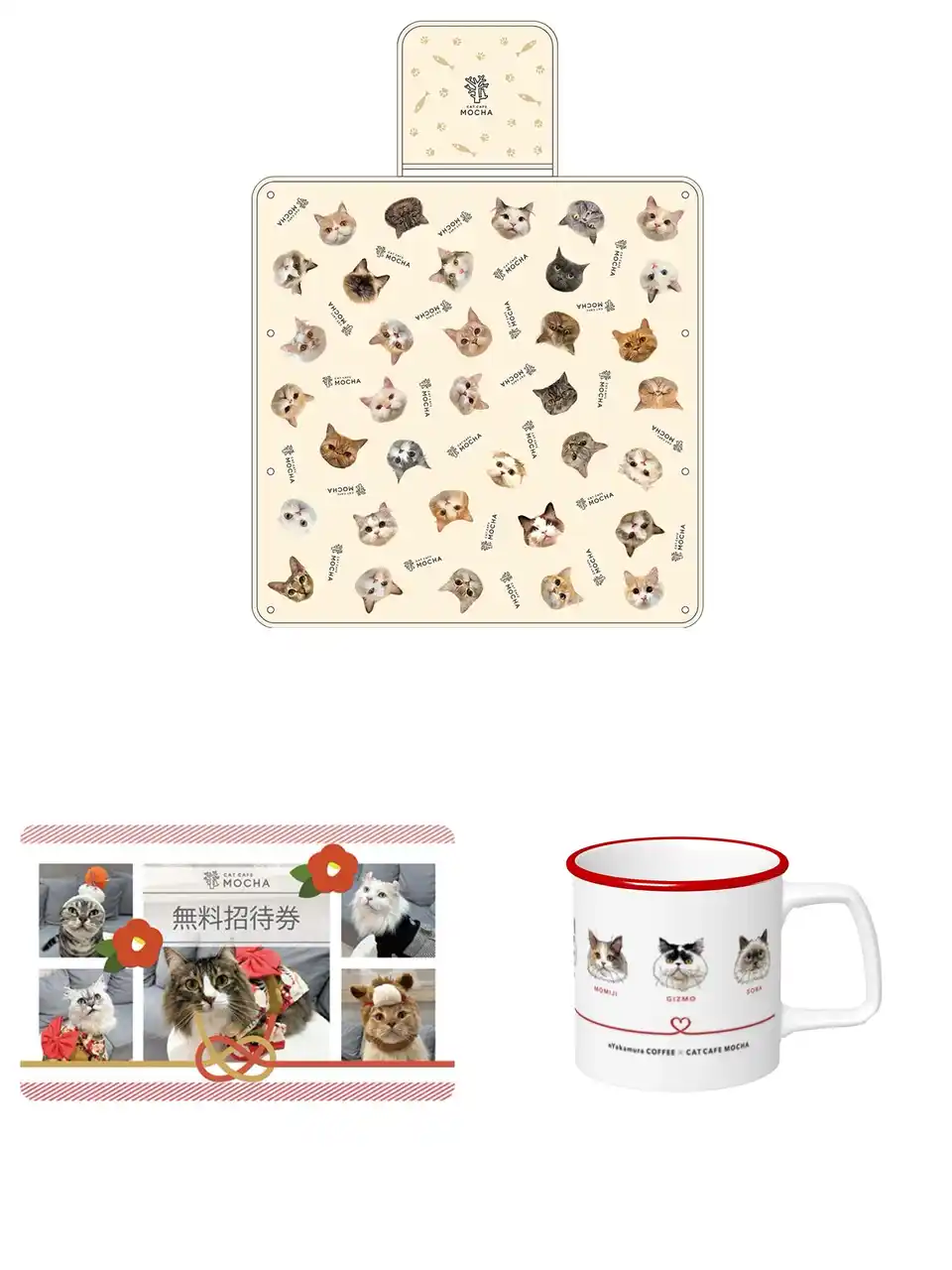 期間中は、にゃんずたちが華やかなお正月衣装でお出迎え。フォトジェニックな姿とともに、猫たちと新年のスタートを祝う特別な時間をお楽しみいただけます。昨年完売が続出した「MOCHA福袋」は、今年も限定アイテムを詰め込んだ特別仕様。『MOCHAにゃんず総選挙2025』で各店舗の1位に輝いた猫ちゃんがプリントされた“限定ブランケット”をはじめ、無料招待券や猫ちゃんグッズなど、総額11,600円相当のお得なセットです。 |