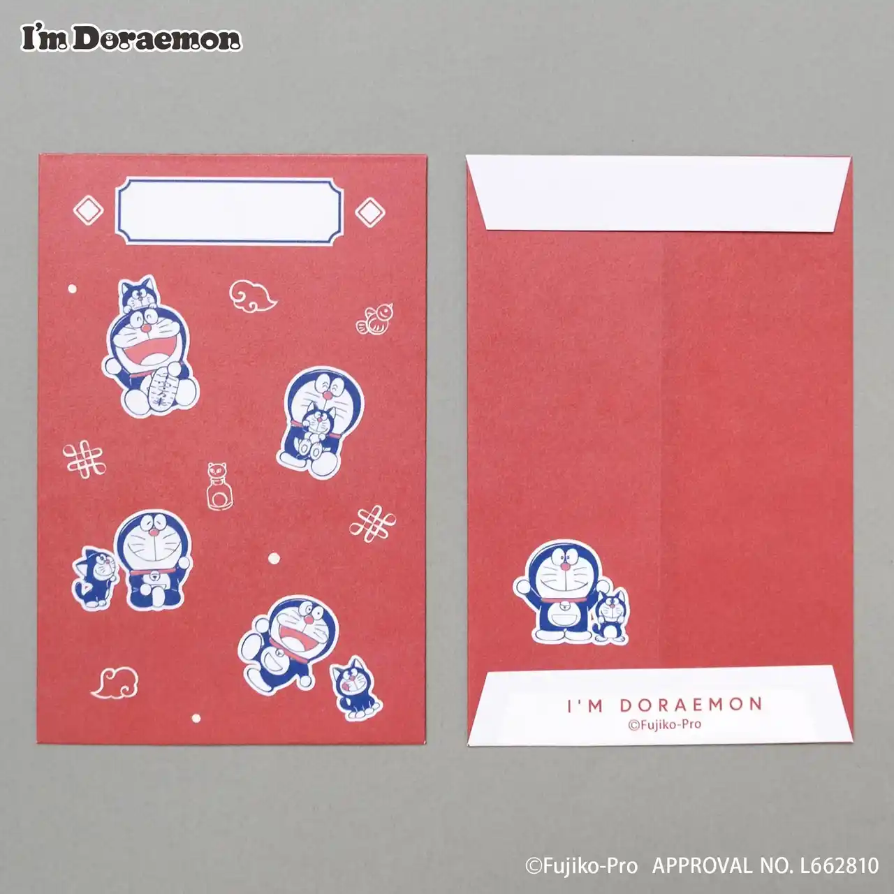 | ひみつ道具「カムカムキャットフード」を食べた猫をモチーフにしたアートを使用し、お正月を感じさせるカラーリングがポイント。 | |||||||||||||||||||||||
