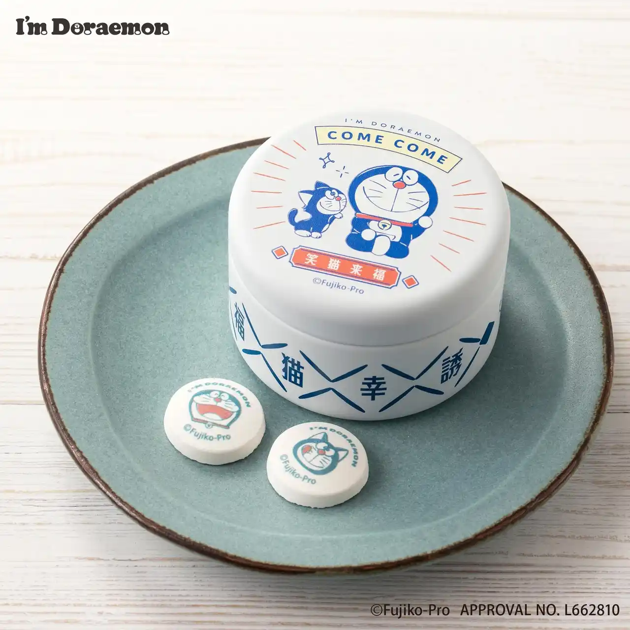 | 【ドラえもんとカムカムキャットフードを食べた猫がプリントされたもなか】 | |||||||||||||||||||||||