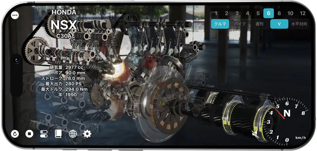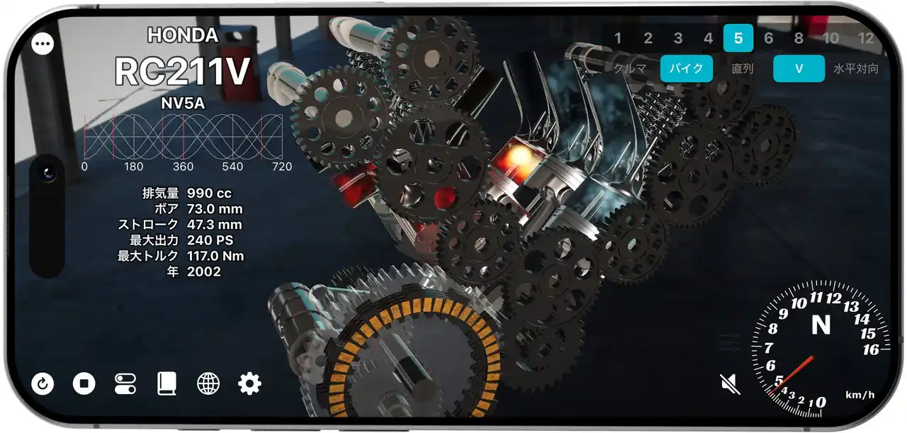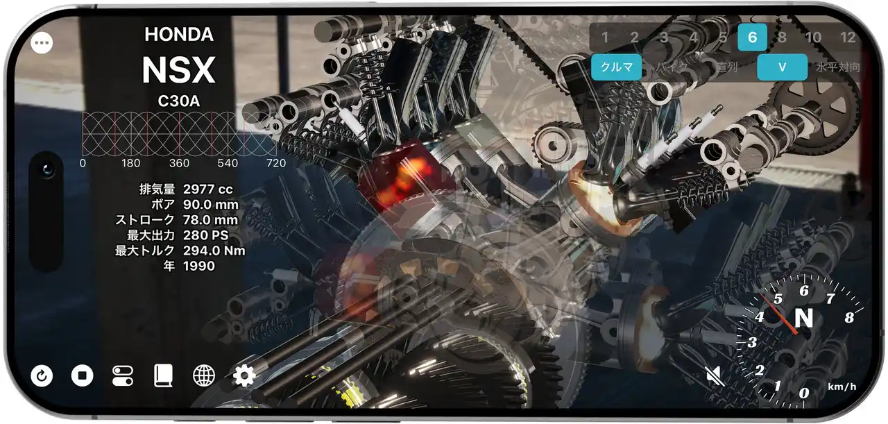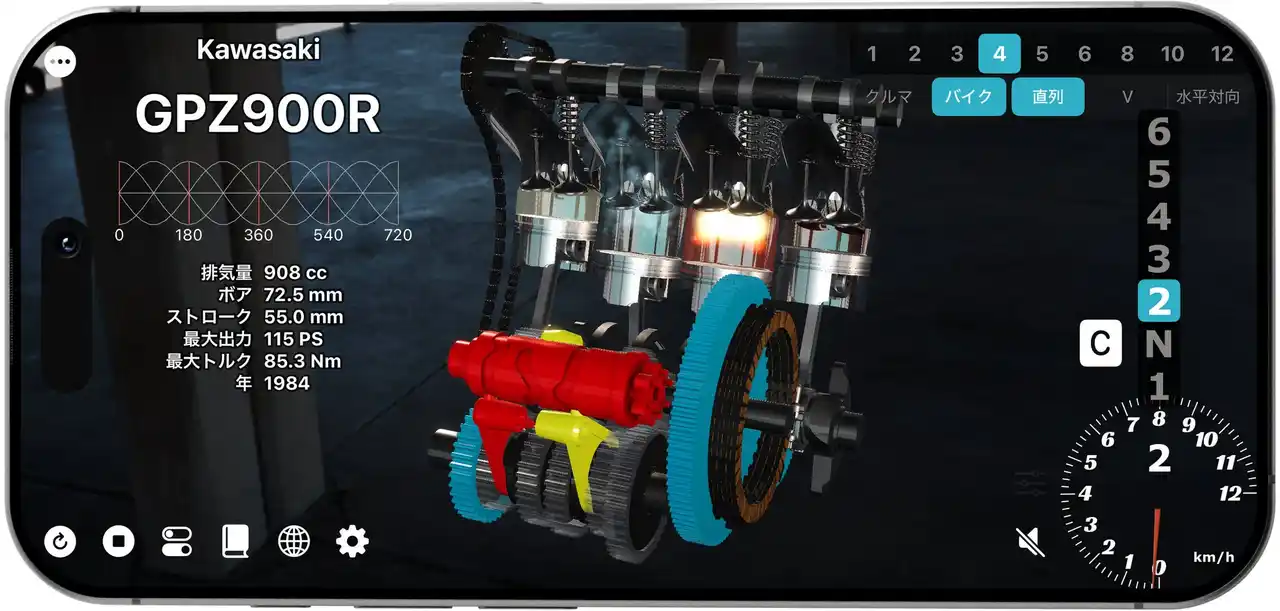 | ※このアプリは、一般公開されているエンジンスペックをもとに学習・鑑賞用途向けに動作を再現したものであり、実際の機械の寸法や構造・意匠を忠実に再現したものではありません。 | ||||||||||||||||||||||||||||||
