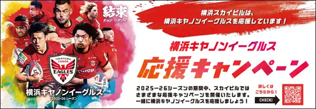| 横浜スカイビルは 2025-26 シーズンも横浜キヤノンイーグルスを応援します! |