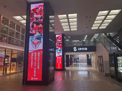 | 当社は、横浜駅東口の大規模複合ビル「スカイビル」の運営を通じて、地域の活性化に貢献してまいりました。2023年から始まったイーグルスとのパートナーシップは、地域スポーツの発展を支える取り組みとして、着実に歩みを重ねています。 | |||||||||