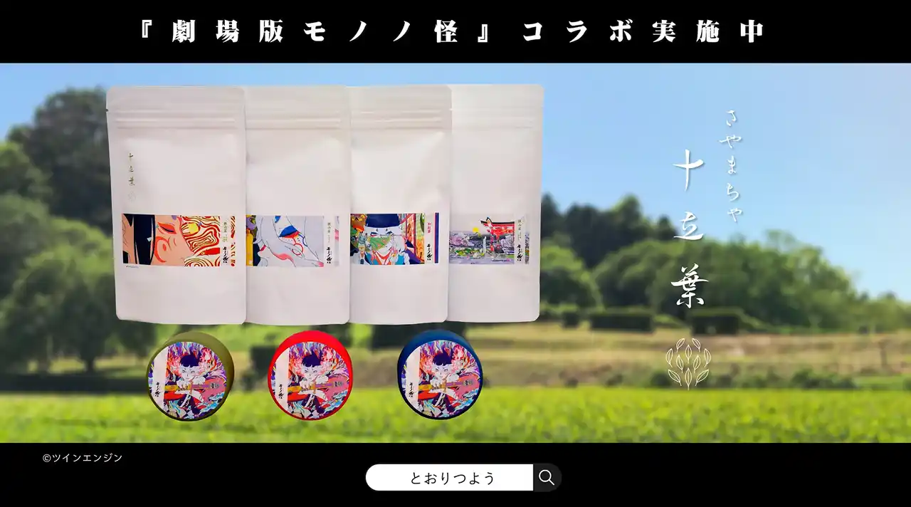 『劇場版モノノ怪』とのコラボレーションパッケージも展開中! 『劇場版モノノ怪』の古き良き「和」を感じる世界観は、十立葉が考える狭山茶の事業展開イメージと重なります。CM放映とコラボ商品の展開を通じ、十立葉の魅力を全国に広く発信してまいります。 |