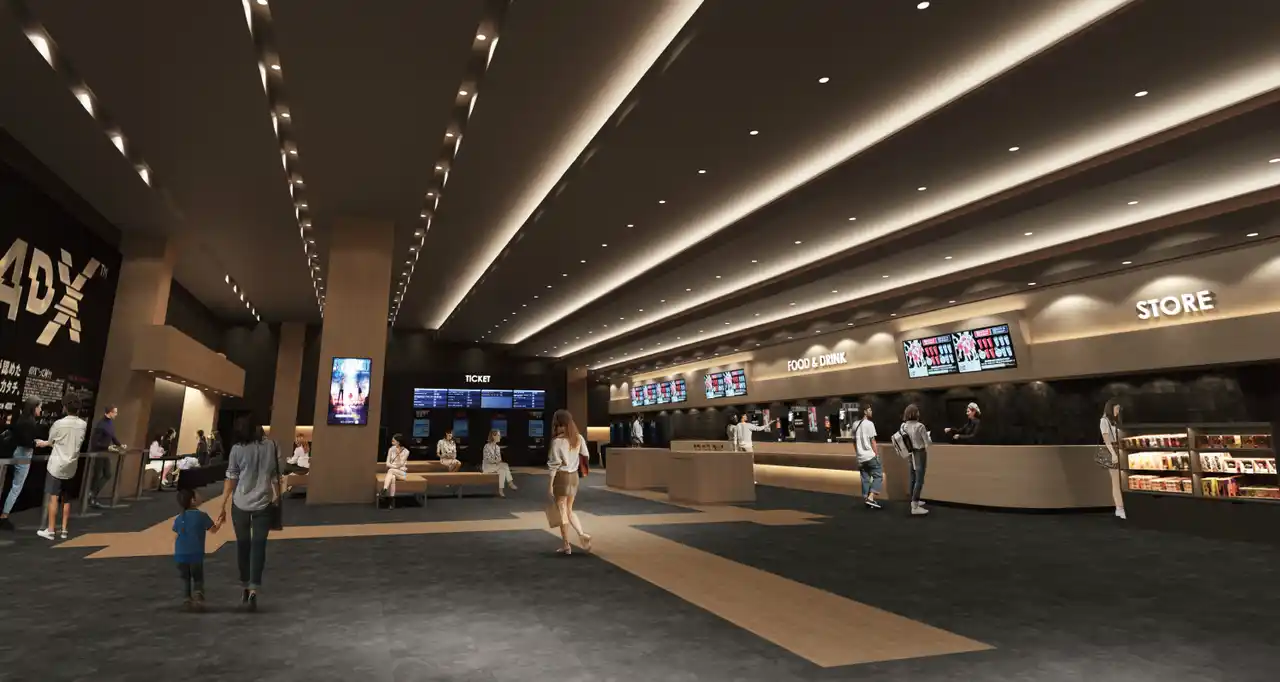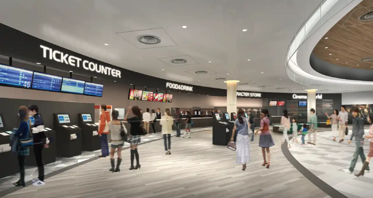 『シネマワールド 中川』は 全12スクリーンを有するシネマコンプレックスです。中川店へお越しのお客さまに、より快適な時間をお過ごしいただくとともに、シネマワールドの世界観を体感していただける空間へとリニューアルいたします。ロビーを一新し、広々とした待合スペースを新設。映画の上映前後の時間をゆったりとお楽しみいただける、開放的で心地よい空間をご提供いたします。また、フードセルフオーダー機・ドリンクバーを新たに導入し、飲食物の購入が一層スムーズに。より便利で快適な映画館として生まれ変わったシネマワールド中川で、ぜひ大切なひとときをお過ごしください。 |