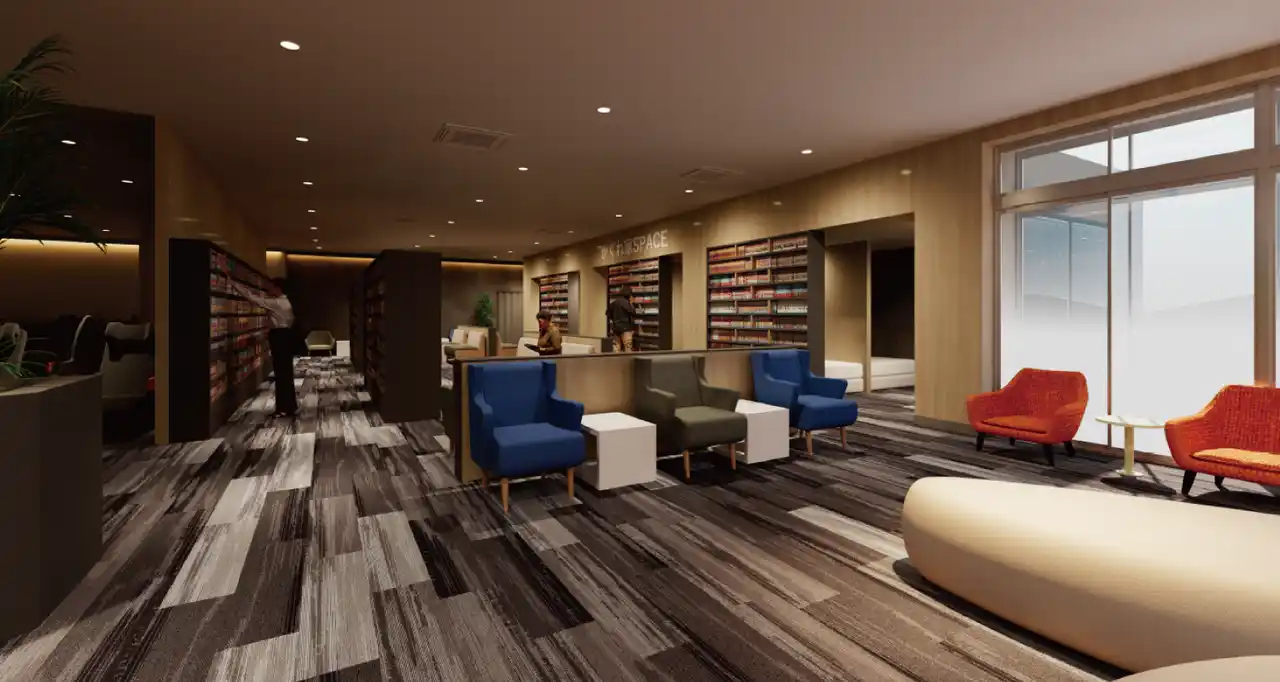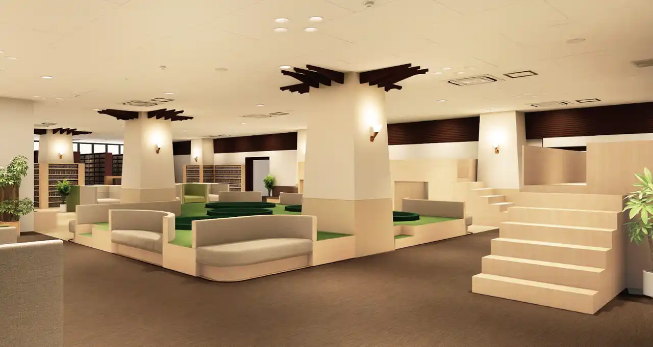 中川コロナワールドも、外装・内装を一新し、落ち着きのあるスタイリッシュな雰囲気を演出。ラウンジスペースはグレーとベージュを基調に、柔らかな照明とファブリック素材を取り入れることで、上質さとリラックス感が調和した心地よい空間に仕上げました。 |