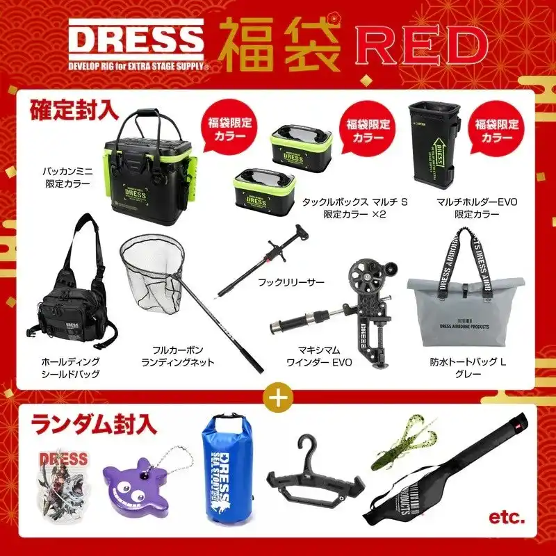 そして福袋は、例年以上の“大盤振る舞い”。 DRESSが本気で“年末の釣りシーンを盛り上げようとしている”のが伝わる内容になっている。 |