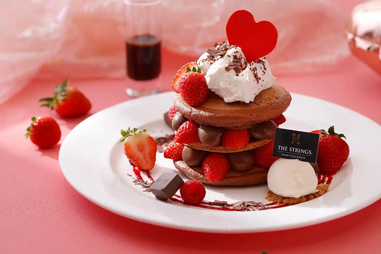 ザ ストリングス 表参道(所在地:東京都港区北青山3-6-8、総支配人:宮田宏之)では、1階「Cafe & Dining ZelkovA(カフェ&ダイニング ゼルコヴァ)」にて、『メルティーラブ ストロベリー&ショコラパンケーキ』を、2025年12月29日(月)~2026年3月31日(火)の期間限定で提供いたします。甘酸っぱいいちごと濃厚ショコラの絶妙なハーモニーで楽しむ、とろけるスウィート&ラブリーなパンケーキとともに至福のひとときをご堪能ください。