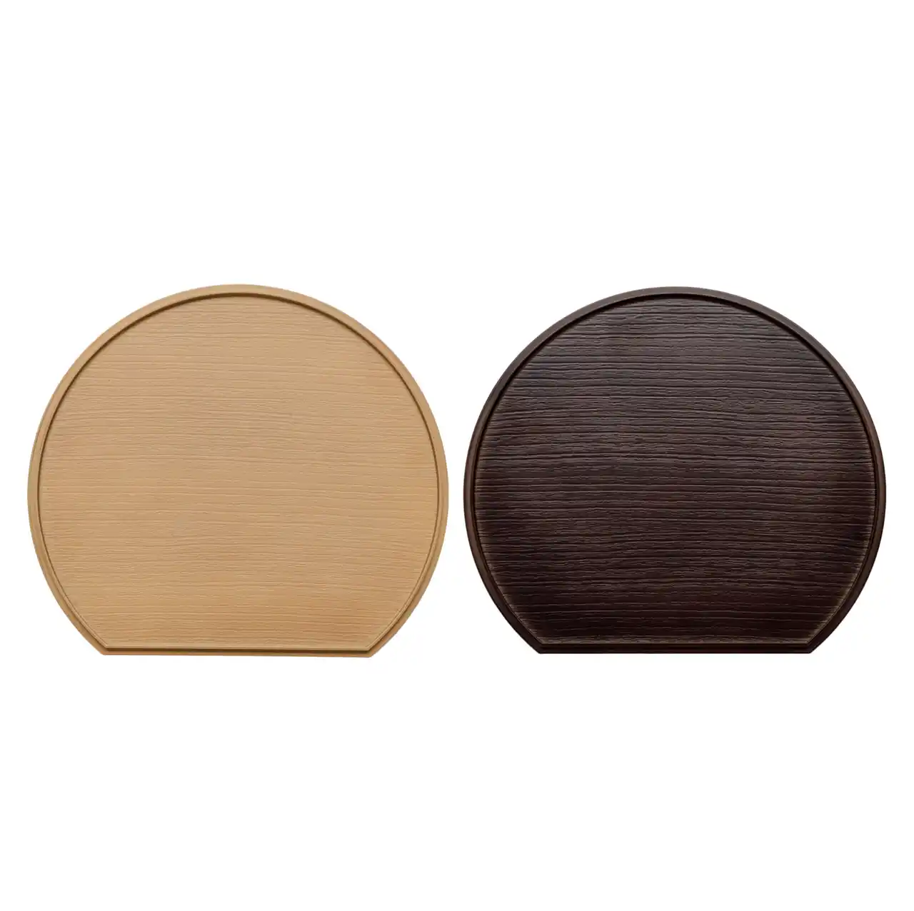 リバーシブル仕様なので、料理やテーブルの雰囲気に合わせて色を選べます。半月形のデザインは、おせち料理や和食を美しく引き立て、限られたスペースでも使いやすい形状になっています。 |