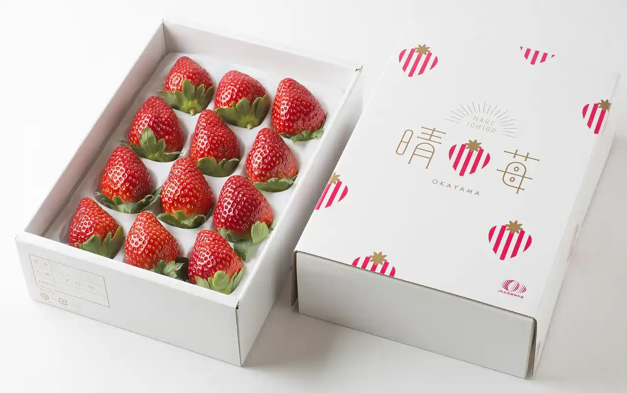 「晴苺(はれいちご)」は岡山県内で栽培される、美しい色と形、濃厚な甘さと香りに優れるいちごの統一ブランド名で、2019(令和元)年に誕生しました。晴れの国おかやまで太陽をいっぱい浴びて栽培されたいちごであること、「ハレの日」の贈り物にふさわしい高品質ないちごであることが伝わるよう「晴苺」と名付けられました。味が濃く、甘さと程よい酸味、そして果肉まで赤いのが特徴です。 |
