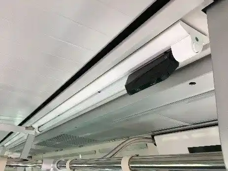 車両内のセキュリティ強化を目的に「LED蛍光灯一体型防犯カメラ」を当社所属の全車両に設置しています。4G回線を使用してリアルタイムで画像を送信する機能の活用により、運輸司令所などで車内の状況を把握し、迅速な対応が可能です。 |