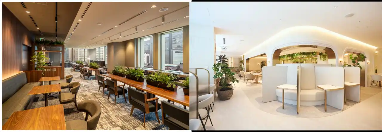 | 8階と27階にある丸ビルワーカー専用ラウンジは、気軽に立ち寄ってリフレッシュできる憩いの空間です。コーヒーや軽食を楽しみながら、オンとオフを切り替え、心地よい時間を過ごすことができます。日々の仕事にちょうどよい余白をつくってくれる、魅力的なリフレッシュスペースです。 | |||||||||
