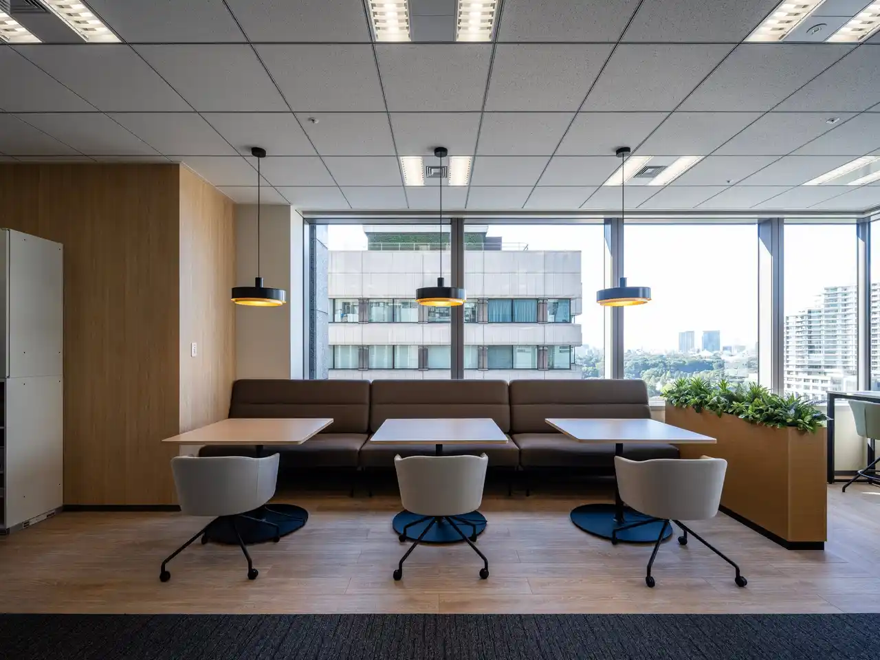 | 新オフィスでは、業務に集中できる快適な執務空間と、活発な意見交換を促すミーティングスペースを整備しました。集中とリラックスを切り替えながら、社員同士の自然なコミュニケーションが生まれる環境の中で、一人ひとりがいきいきと力を発揮できる職場づくりを目指しています。 | |||||||||