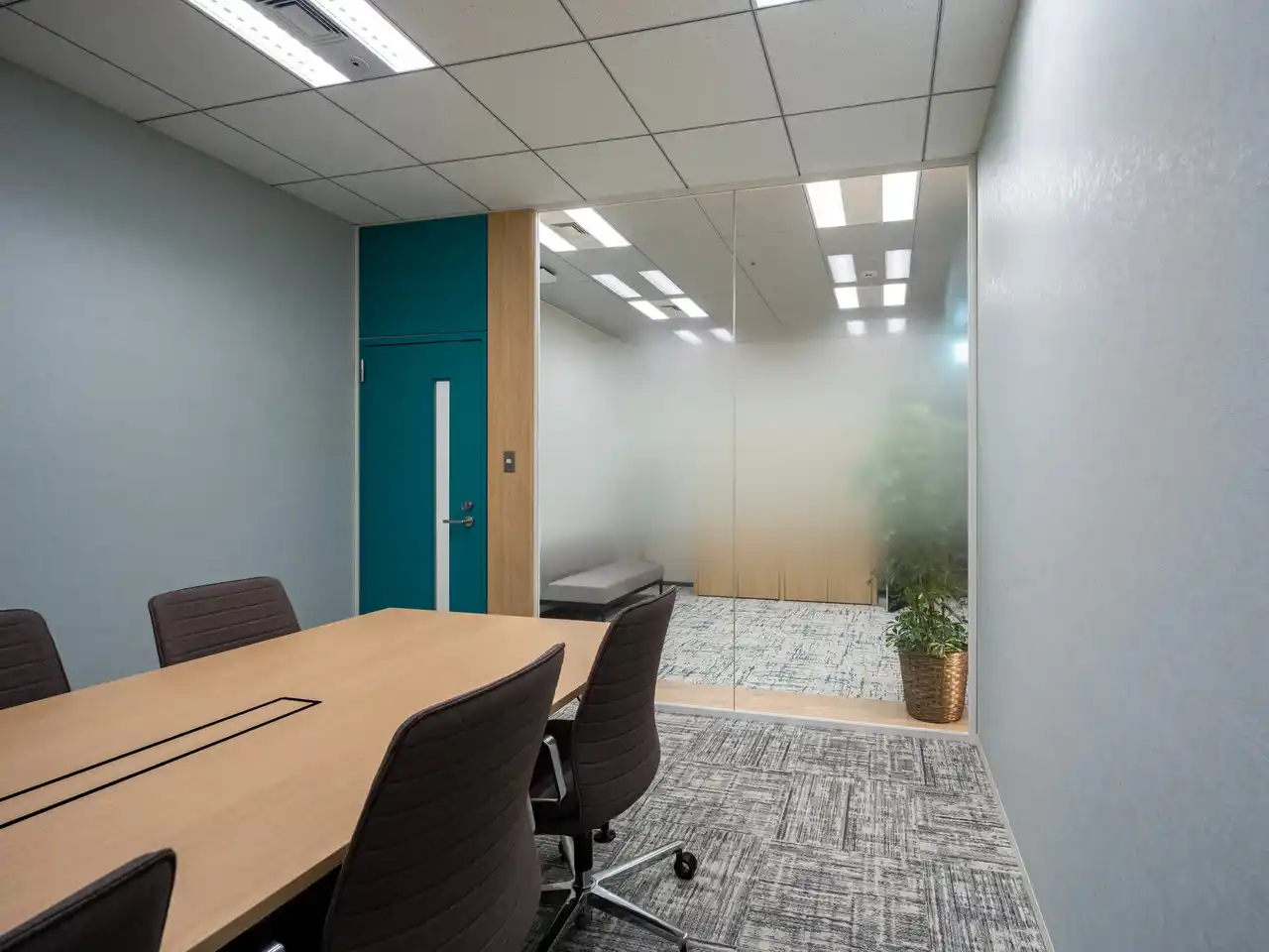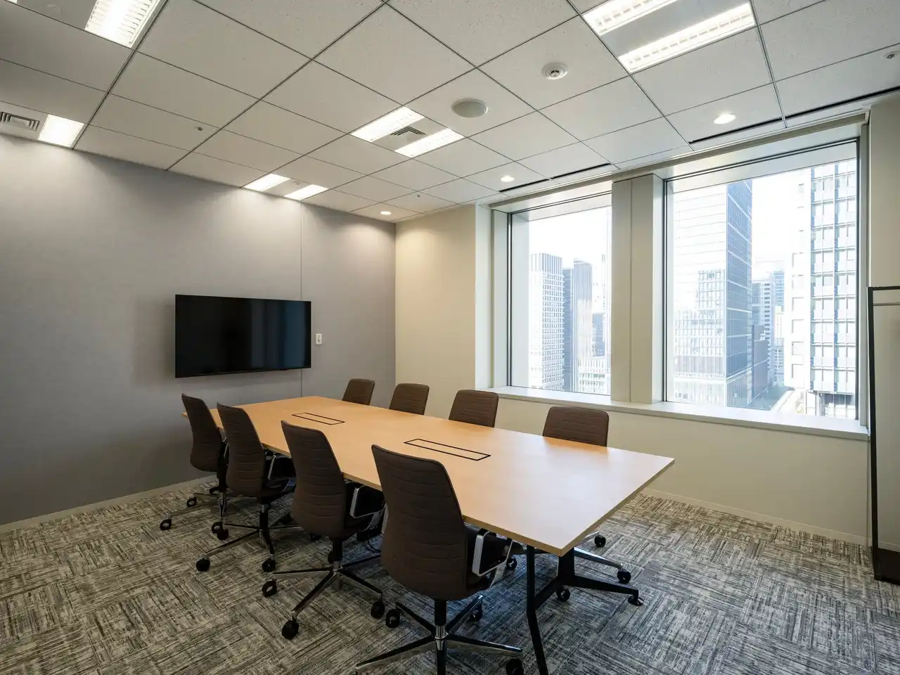 | 重要な商談やプロジェクト推進の場として、機密性と機能性を兼ね備えたカンファレンスルームを設けました。落ち着いた空間で戦略的な議論とスピーディな意思決定を支え、お客様との信頼関係をさらに深め、高付加価値なサービスの提供につなげていきます。 | |||||||||