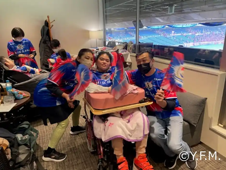 | このたびは素晴らしい機会をありがとうございました。大きな車椅子と常時必要な吸引などの医療的ケアのため、なかなかスポーツ観戦に行く気持ちが湧かないのですが、招待してくださったおかげで家族皆でとても楽しい時間を過ごすことができました。 | |||||||||