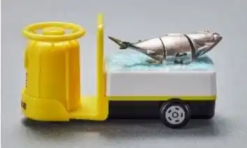 レーの車輪を動かすことで荷台の“まぐろ”がぴちぴちと上下に動き、新鮮な“まぐろ”を |