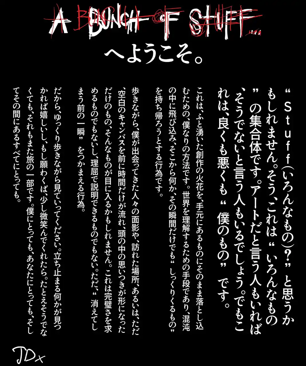 誰もが知るハリウッドを代表するスター、ジョニー・デップ。しかし彼のクリエイターとしての顔は、まだまだ知らない人も多い。「A Bunch of Stuff」は彼が30年以上に渡る創作活 |