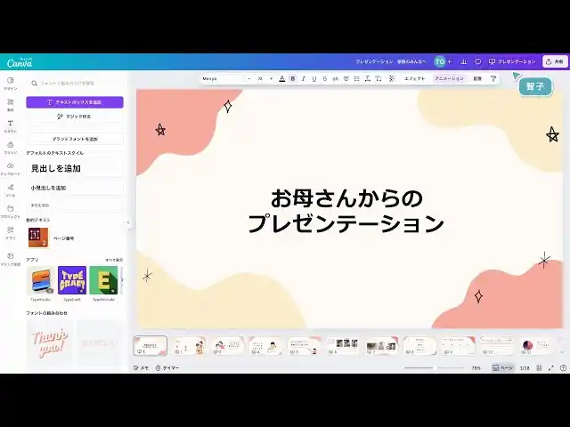 | この物語は、誰もがCanvaを使って意味あるものを創造できることを示しています。プロのデザイナーではない母親が、手もとにあるビジュアル素材だけで美しく感動的なプレゼンテーションをデザイン。映像では、専門スキルも複雑なツールも特別な素材も不要であることに加えてCanvaの使いやすさも紹介され、写真背景透過などの機能によりすっきりと統一感のあるビジュアルプレゼンテーションにまとめる様子が描かれています。 | |||||||||||||||||||||
