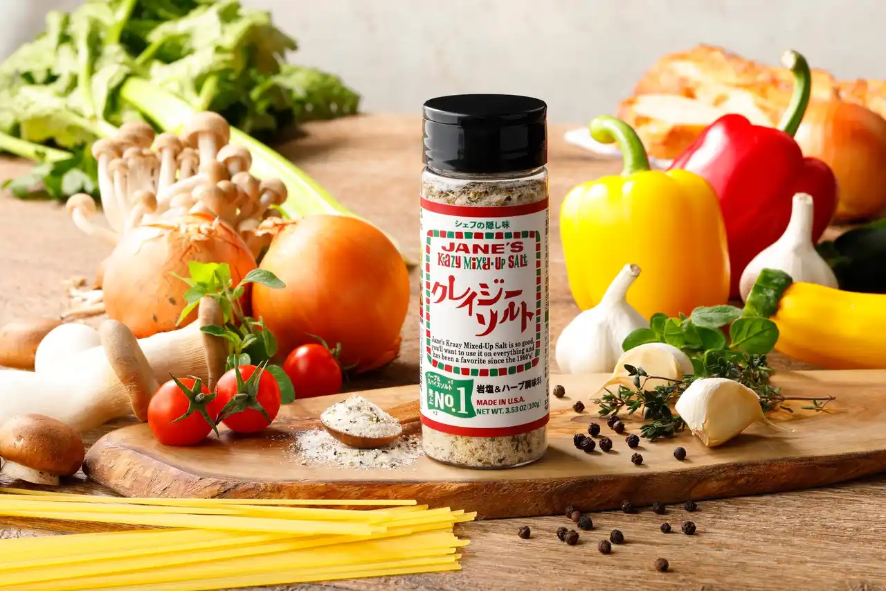 また、クレイジーという単語には、「Crazy for you・あなたに夢中」のように、「夢中になる」という意味があります。クレイジーソルトは「キッチンを楽しくする調味料として愛されてほしい」という願いを込めて、頭文字のCをキッチンのKに換えて「Krazy Mixed-up salt」と命名されました。日本では1980年から輸入・販売開始している、ロングセラーの調味料です。 |